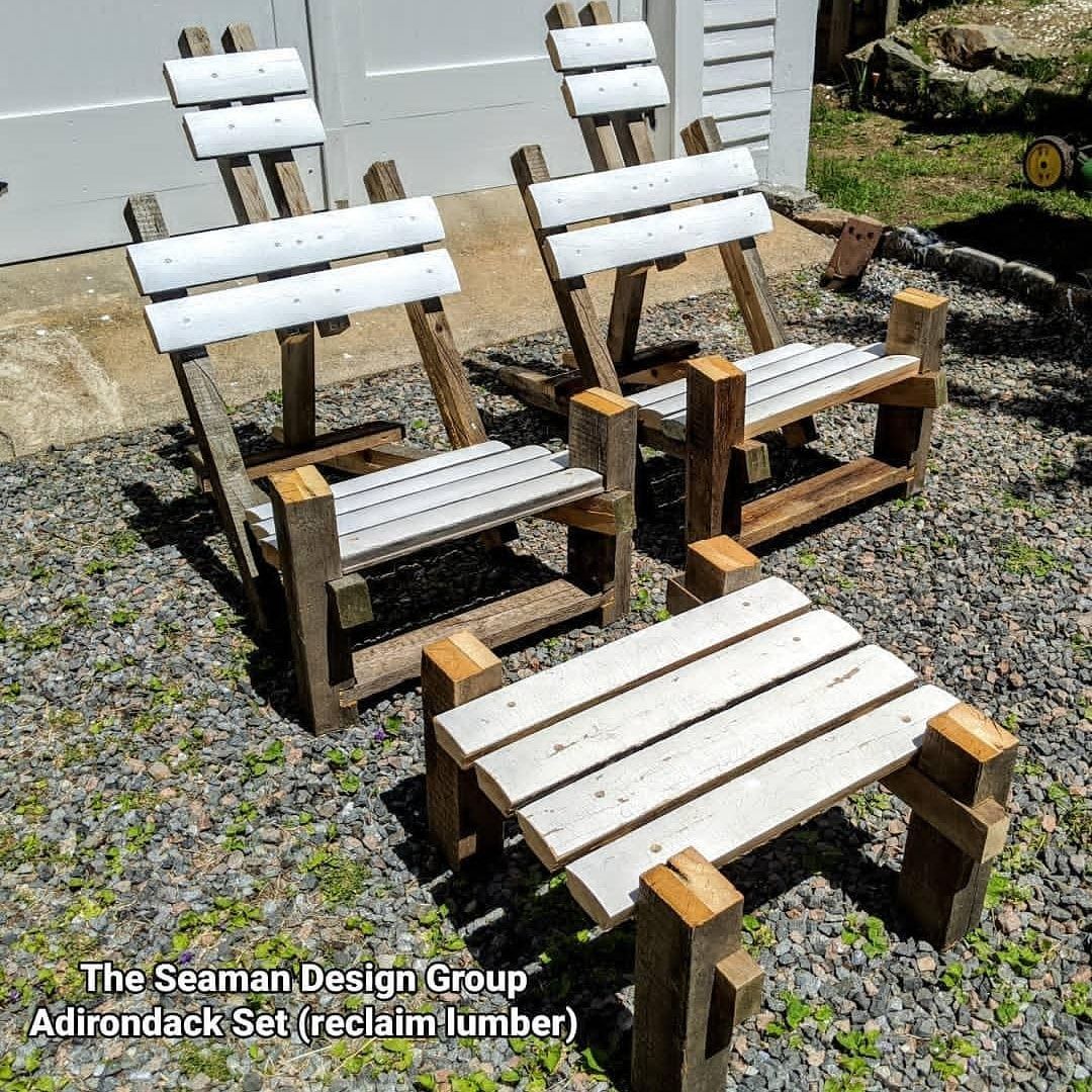 On the boards and in the shop presently is the development of The Adirondack Pair, with a completed prototype built of reclaimed lumber, but scheduled now to be fabricated in aluminum, with hardwood slats.